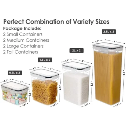 Kitchen Food Storage Containers Set, Pantry Organization and with Easy Lock Lids, 8 Pieces &Organ