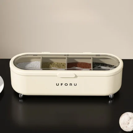 Kitchen Supplies Salt, Sugar, and Monosodium Glutamate Four-Grid Storage Integrated Light Luxury Spice Box Combination Suit